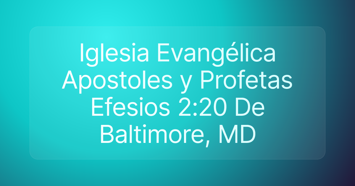 Iglesia Evangélica Apostoles y Profetas Efesios 2:20 De Baltimore, MD