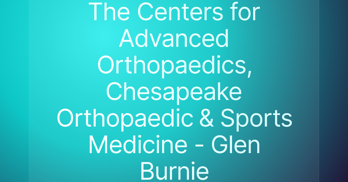 The Centers for Advanced Orthopaedics, Chesapeake Orthopaedic & Sports Medicine - Glen Burnie