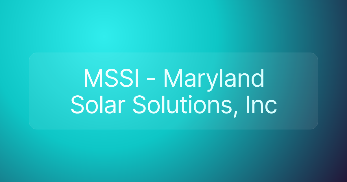MSSI - Maryland Solar Solutions, Inc