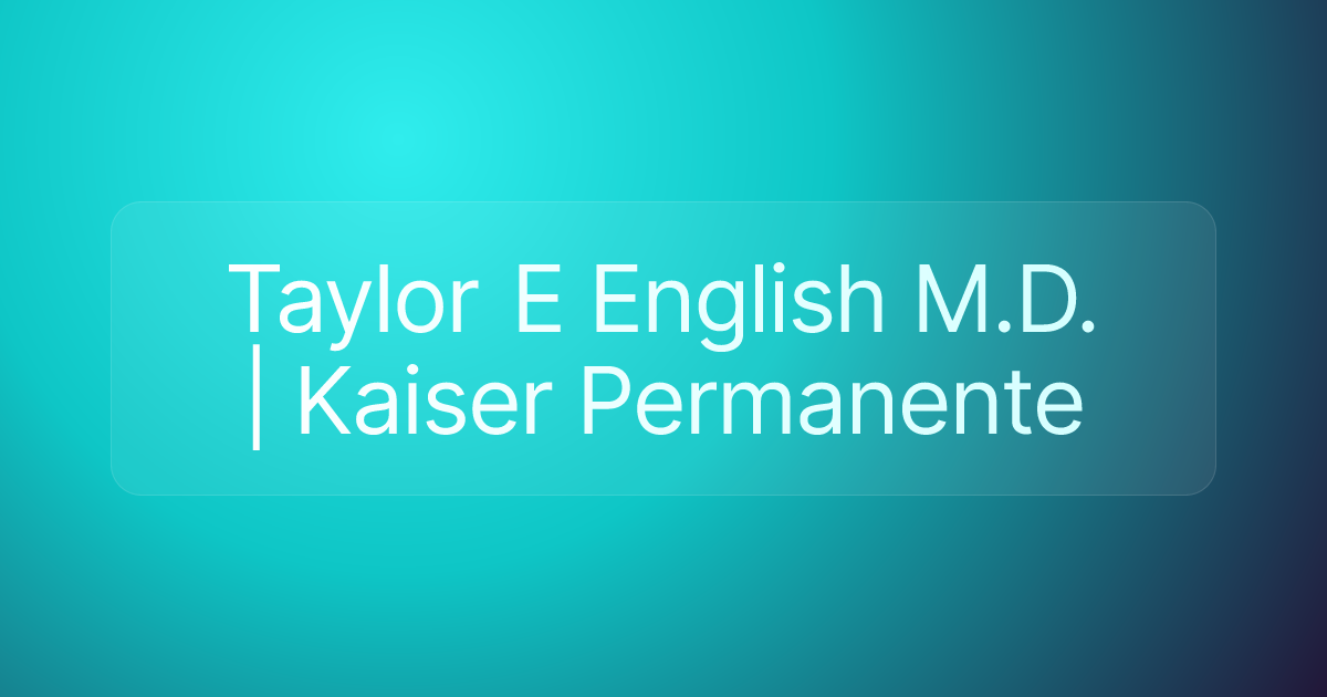 Taylor E English M.D. | Kaiser Permanente