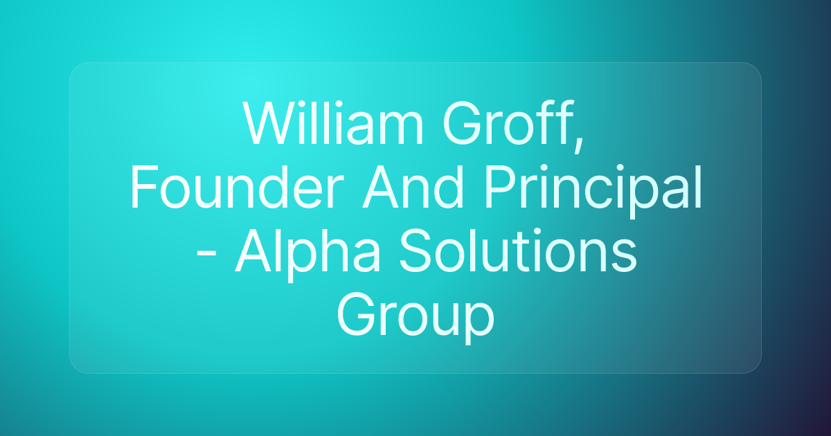 William Groff, Founder And Principal - Alpha Solutions Group