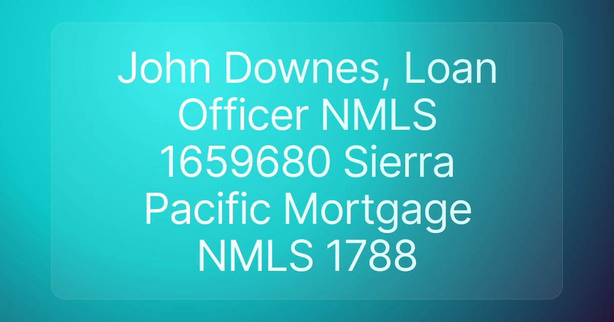John Downes, Loan Officer NMLS 1659680 Sierra Pacific Mortgage NMLS 1788