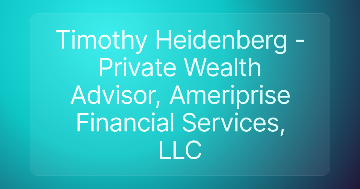 Timothy Heidenberg - Private Wealth Advisor, Ameriprise Financial Services, LLC