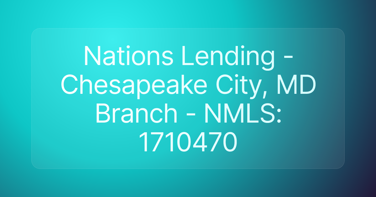Nations Lending - Chesapeake City, MD Branch - NMLS: 1710470